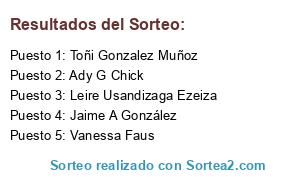 Se elegirá 5 ganador/es y 5 suplente/s mediante la plataforma sortea2.com con la que elegiremos de forma aleatoria a los ganadores del sorteo. Posteriormente este vídeo que generaremos en la plataforma lo publicaremos en nuestra página de Facebook el día 03/02/2022.
