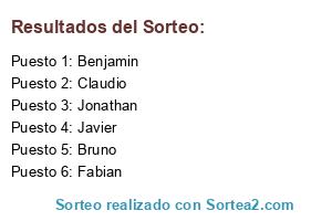 Lista de participantes: Fabian, Jonathan, Claudio, Bruno, Javier, Benjamin.