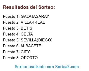 Lista de participantes: CELTA, ALBACETE, VILLARREAL, BETIS, GALATASARAY, SEVILLA(DIEGO), CITY, OPORTO.