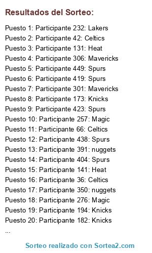 Lista de participantes: Participante 1: Sixers, Participante 2: Sixers, Participante 3: Sixers, Participante 4: Sixers, Participante 5: Sixers, Participante 6: Sixers, Participante 7: Sixers, Participante 8: Sixers, Participante 9: Sixers, Participante 10: Sixers, Participante 11: Sixers, Participante 12: Sixers, Participante 13: Sixers, Participante 14: Sixers, Participante 15: Sixers, Participante 16: Sixers, Participante 17: Sixers, Participante 18: Sixers, Participante 19: Sixers, Participante 20: Sixers, Participante 21: Sixers, Participante 22: Sixers, Participante 23: Sixers, Participante 24: Sixers, Participante 25: Sixers, Participante 26: Sixers, Participante 27: Sixers, Participante 28: Sixers, Participante 29: Sixers, Participante 30: Sixers, Participante 31: Sixers, Participante 32: Celtics, Participante 33: Celtics, Participante 34: Celtics, Participante 35: Celtics, Participante 36: Celtics, Participante 37: Celtics, Participante 38: Celtics, Participante 39: Celtics, Participante 40: Celtics, Participante 41: Celtics, Participante 42: Celtics, Participante 43: Celtics, Participante 44: Celtics, Participante 45: Celtics, Participante 46: Celtics, Participante 47: Celtics, Participante 48: Celtics, Participante 49: Celtics, Participante 50: Celtics, Participante 51: Celtics, Participante 52: Celtics, Participante 53: Celtics, Participante 54: Celtics, Participante 55: Celtics, Participante 56: Celtics, Participante 57: Celtics, Participante 58: Celtics, Participante 59: Celtics, Participante 60: Celtics, Participante 61: Celtics, Participante 62: Celtics, Participante 63: Celtics, Participante 64: Celtics, Participante 65: Celtics, Participante 66: Celtics, Participante 67: Celtics, Participante 68: Celtics, Participante 69: Celtics, Participante 70: Celtics, Participante 71: Celtics, Participante 72: Celtics, Participante 73: Hawks, Participante 74: Hawks, Participante 75: Hawks, Participante 76: Hawks, Participante 77: Hawks, Participante 78: Hawks, Participante 79: Hawks, Participante 80: Hawks, Participante 81: Hawks, Participante 82: Hawks, Participante 83: Hawks, Participante 84: Hawks, Participante 85: Hawks, Participante 86: Hawks, Participante 87: Hawks, Participante 88: Hawks, Participante 89: Hawks, Participante 90: Hawks, Participante 91: Hawks, Participante 92: Hawks, Participante 93: Hawks, Participante 94: Hawks, Participante 95: Hawks, Participante 96: Hawks, Participante 97: Hawks, Participante 98: Hawks, Participante 99: Hawks, Participante 100: Hawks, Participante 101: Hawks, Participante 102: Hawks, Participante 103: Hawks, Participante 104: Hawks, Participante 105: Hawks, Participante 106: Hawks, Participante 107: Hawks, Participante 108: Heat, Participante 109: Heat, Participante 110: Heat, Participante 111: Heat, Participante 112: Heat, Participante 113: Heat, Participante 114: Heat, Participante 115: Heat, Participante 116: Heat, Participante 117: Heat, Participante 118: Heat, Participante 119: Heat, Participante 120: Heat, Participante 121: Heat, Participante 122: Heat, Participante 123: Heat, Participante 124: Heat, Participante 125: Heat, Participante 126: Heat, Participante 127: Heat, Participante 128: Heat, Participante 129: Heat, Participante 130: Heat, Participante 131: Heat, Participante 132: Heat, Participante 133: Heat, Participante 134: Heat, Participante 135: Heat, Participante 136: Heat, Participante 137: Heat, Participante 138: Heat, Participante 139: Heat, Participante 140: Heat, Participante 141: Heat, Participante 142: Heat, Participante 143: Heat, Participante 144: Heat, Participante 145: Heat, Participante 146: Heat, Participante 147: Knicks, Participante 148: Knicks, Participante 149: Knicks, Participante 150: Knicks, Participante 151: Knicks, Participante 152: Knicks, Participante 153: Knicks, Participante 154: Knicks, Participante 155: Knicks, Participante 156: Knicks, Participante 157: Knicks, Participante 158: Knicks, Participante 159: Knicks, Participante 160: Knicks, Participante 161: Knicks, Participante 162: Knicks, Participante 163: Knicks, Participante 164: Knicks, Participante 165: Knicks, Participante 166: Knicks, Participante 167: Knicks, Participante 168: Knicks, Participante 169: Knicks, Participante 170: Knicks, Participante 171: Knicks, Participante 172: Knicks, Participante 173: Knicks, Participante 174: Knicks, Participante 175: Knicks, Participante 176: Knicks, Participante 177: Knicks, Participante 178: Knicks, Participante 179: Knicks, Participante 180: Knicks, Participante 181: Knicks, Participante 182: Knicks, Participante 183: Knicks, Participante 184: Knicks, Participante 185: Knicks, Participante 186: Knicks, Participante 187: Knicks, Participante 188: Knicks, Participante 189: Knicks, Participante 190: Knicks, Participante 191: Knicks, Participante 192: Knicks, Participante 193: Knicks, Participante 194: Knicks, Participante 195: Knicks, Participante 196: Knicks, Participante 197: Knicks, Participante 198: Knicks, Participante 199: Knicks, Participante 200: Knicks, Participante 201: Knicks, Participante 202: Knicks, Participante 203: Knicks, Participante 204: Knicks, Participante 205: Knicks, Participante 206: Knicks, Participante 207: Knicks, Participante 208: Knicks, Participante 209: Knicks, Participante 210: Knicks, Participante 211: Lakers, Participante 212: Lakers, Participante 213: Lakers, Participante 214: Lakers, Participante 215: Lakers, Participante 216: Lakers, Participante 217: Lakers, Participante 218: Lakers, Participante 219: Lakers, Participante 220: Lakers, Participante 221: Lakers, Participante 222: Lakers, Participante 223: Lakers, Participante 224: Lakers, Participante 225: Lakers, Participante 226: Lakers, Participante 227: Lakers, Participante 228: Lakers, Participante 229: Lakers, Participante 230: Lakers, Participante 231: Lakers, Participante 232: Lakers, Participante 233: Lakers, Participante 234: Lakers, Participante 235: Lakers, Participante 236: Lakers, Participante 237: La