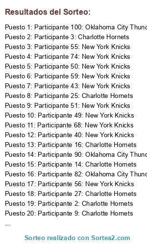 - Puesto 1: Participante 100: Oklahoma City Thunder