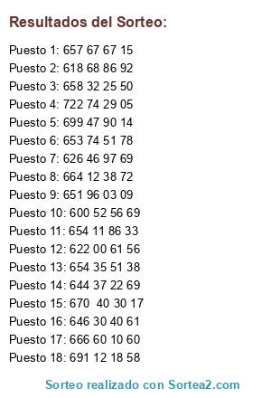 Resultados del sorteo: