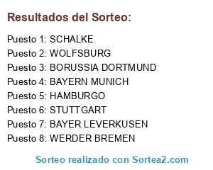 Lista de participantes: BAYER LEVERKUSEN, BAYERN MUNICH, BORUSSIA DORTMUND, HAMBURGO, SCHALKE, STUTTGART, WOLFSBURG, WERDER BREMEN.