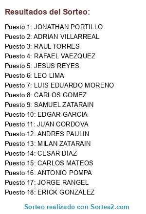 Lista de participantes: jomalk1, currupipimiss, jmtortu, wolverine_rms, julianhr, willy__12, eckae, ismajimva, beken26, yogur32, michuswansea9, oskarmp, vakero14, evania.