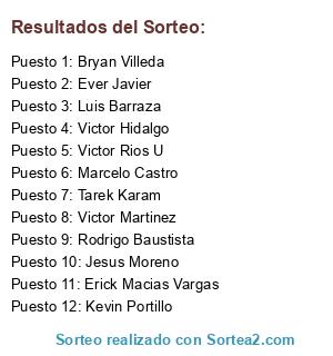 Resultados del sorteo: