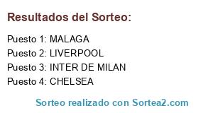 Lista de participantes: MALAGA, INTER DE MILAN, CHELSEA, LIVERPOOL.