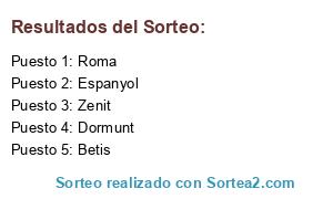 Lista de participantes: Dormunt, Roma, Espanyol, Zenit, Betis.