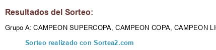 Lista de participantes: CAMPEON SUPERCOPA, CAMPEON LIGA, CAMPEON COPA, SUB COPA.