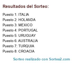 Lista de participantes: ITALIA, HOLANDA, PORTUGAL, TURQUIA, URUGUAY, CROACIA, AUSTRALIA, MEXICO.