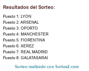 Lista de participantes: ESPAÑOL, CHELSEA, MARSELLA, SEVILLA, MILÁN, ASTON VILLA, JUVENTUS, ROMA.