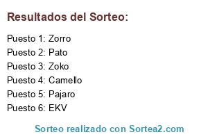 Lista de participantes: Pajaro, Pato, Camello, Zorro, Zoko, EKV.