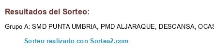 Lista de participantes: OCASO LA PALMA, SMD PUNTA UMBRIA, PMD ALJARAQUE, DESCANSA.