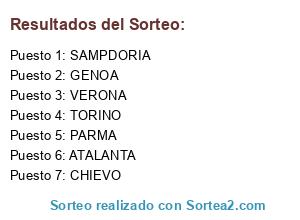 Lista de participantes: ATALANTA, CHIEVO, GENOA, PARMA, SAMPDORIA, TORINO, VERONA.
