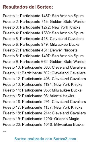 - Puesto 16: Participante 291: Cleveland Cavaliers