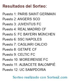 Resultados del sorteo: