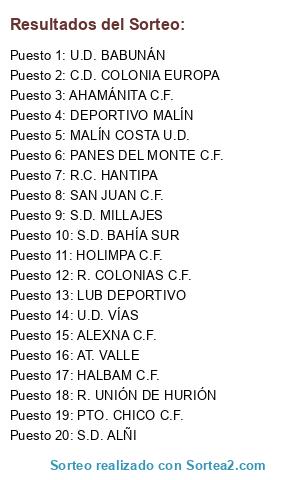 Lista de participantes: AHAMÁNITA C.F., ALEXNA C.F., AT. VALLE, C.D. COLONIA EUROPA, DEPORTIVO MALÍN, HALBAM C.F., HOLIMPA C.F., LUB DEPORTIVO, MALÍN COSTA U.D., PANES DEL MONTE C.F., PTO. CHICO C.F., R. COLONIAS C.F., R. UNIÓN DE HURIÓN, R.C. HANTIPA, S.D. ALÑI, S.D. BAHÍA SUR, S.D. MILLAJES, SAN JUAN C.F., U.D. BABUNÁN, U.D. VÍAS.