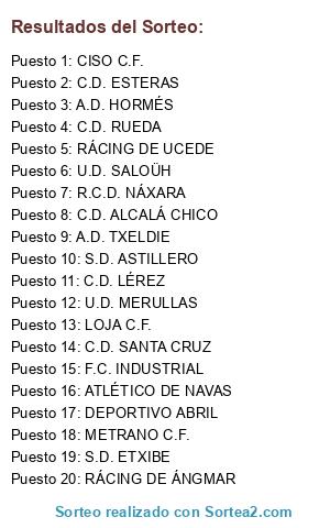 Lista de participantes: A.D. HORMÉS, A.D. TXELDIE, ATLÉTICO DE NAVAS, C.D. ALCALÁ CHICO, C.D. ESTERAS, C.D. LÉREZ, C.D. RUEDA, C.D. SANTA CRUZ, CISO C.F., DEPORTIVO ABRIL, F.C. INDUSTRIAL, LOJA C.F., METRANO C.F., R.C.D. NÁXARA, RÁCING DE ÁNGMAR, RÁCING DE UCEDE, S.D. ASTILLERO, S.D. ETXIBE, U.D. MERULLAS, U.D. SALOÜH.