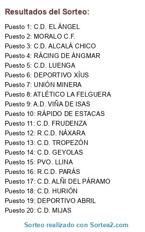 Lista de participantes: A.D. VIÑA DE ISAS, ATLÉTICO LA FELGUERA, C.D. ALCALÁ CHICO, C.D. ALÑI DEL PÁRAMO, C.D. EL ÁNGEL, C.D. FRUDENZA, C.D. GEYOLAS, C.D. HURIÓN, C.D. LUENGA, C.D. MIJAS, C.D. TROPEZÓN, DEPORTIVO ABRIL, DEPORTIVO XÍUS, MORALO C.F., PVO. LLINA, R.C.D. NÁXARA, R.C.D. PARÁS, RÁCING DE ÁNGMAR, RÁPIDO DE ESTACAS, UNIÓN MINERA.