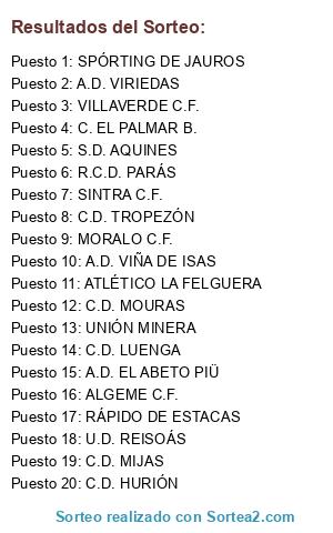 Lista de participantes: A.D. EL ABETO PIÜ, A.D. VIÑA DE ISAS, A.D. VIRIEDAS, ALGEME C.F., ATLÉTICO LA FELGUERA, C. EL PALMAR B., C.D. HURIÓN, C.D. LUENGA, C.D. MIJAS, C.D. MOURAS, C.D. TROPEZÓN, MORALO C.F., R.C.D. PARÁS, RÁPIDO DE ESTACAS, S.D. AQUINES, SINTRA C.F., SPÓRTING DE JAUROS, U.D. REISOÁS, UNIÓN MINERA, VILLAVERDE C.F..