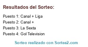 Lista de participantes: La Sexta, Canal +, Cuatro, Antena 3, Gol Television, Canal + Liga.