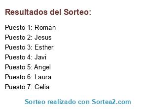Lista de participantes: Roman, Jesus, Celia, Laura, Esther, Javi, Angel.