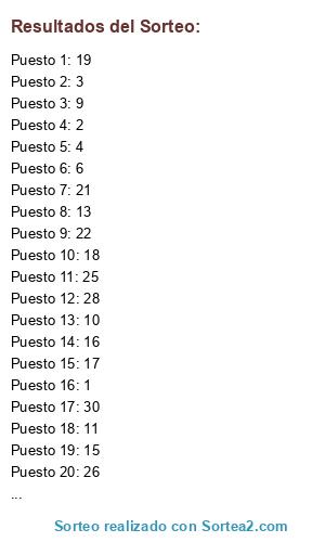 Lista de participantes: 1, 2, 3, 4, 5, 6, 7, 8, 9, 10, 11, 12, 13, 14, 15, 16, 17, 18, 19, 20, 21, 22, 23, 24, 25, 26, 27, 28, 29, 30, 31, 32, 33, 34, 35.