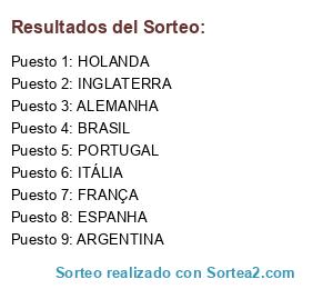 Lista de participantes: BRASIL, ARGENTINA, ESPANHA, ITÁLIA, FRANÇA, INGLATERRA, ALEMANHA, HOLANDA, PORTUGAL, COSTA DO MARFIM.