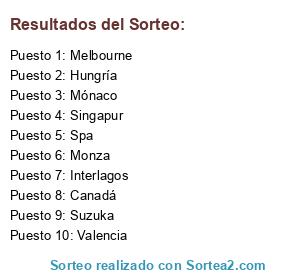 Lista de participantes: Mónaco, Canadá, Valencia, Spa, Interlagos, Monza, Hungría, Melbourne, Suzuka, Singapur.