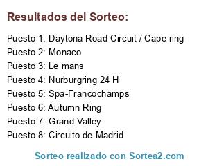 Lista de participantes: Autumn Ring, Circuito de Madrid, Monaco, Nurburgring 24 H, Le mans, Spa-Francochamps, Grand Valley, Daytona Road Circuit / Cape ring.
