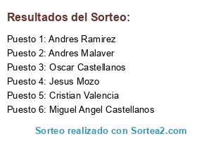 Lista de participantes: Andres Ramirez, Oscar Castellanos, Miguel Angel Castellanos, Jesus Mozo, Cristian Valencia, Andres Malaver.