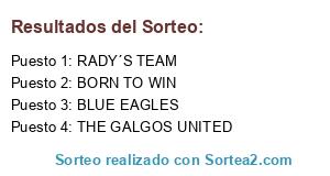 Lista de participantes: THE GALGOS UNITED, BLUE EAGLES, BORN TO WIN, RADY´S TEAM.