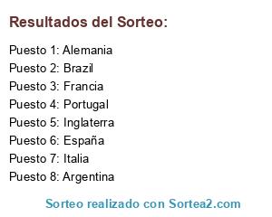 Lista de participantes: Inglaterra, Francia, Alemania, Italia, Portugal, España, Argentina, Brazil.