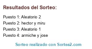 Lista de participantes: armiche y jose, hector y miru, Aleatorio 1, Aleatorio 2.