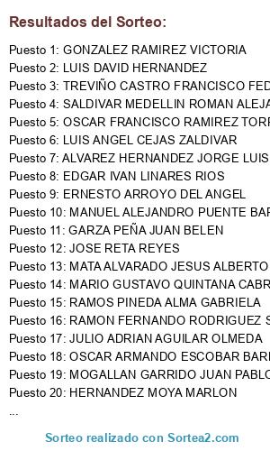 - Puesto 36: GONZALEZ MARTINEZ MARIO ALBERTO