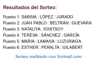 Lista de participantes: ELEISHA RAE KENNEDY, ROSS AUSTYN BURRON, CASSANDRA LEE BERMÚDEZ BIRNIKS, MERCEDES IBÁÑEZ HERNÁNDEZ, SILVIA FERNÁNDEZ DURÁN, EVELYN CASTRO ROMERO, GONZALO REYES AGUILERA, PABLO MORIENTES IGLESIAS, SARA MELÉNDEZ MONTIEL, CRISTINA SALAZAR PALOMO, YOLANDA ORTÍZ DEL CASTILLO, ANA MARIA LOPEZ RIOS, SABINA LÓPEZ JURADO, CECILIA SOLÍS, FRANCISCO ANAYA MELERO, GABRIELA AMADO, MARIA CRISTINA LAVÍN MORENO, JOSE ANTONIO VEGA FERNÁNDEZ, CINTHIA AGUILAR GONZALEZ, PATRICIA AGUILAR GONZALEZ, DOLORES MARTIN JIMÉNEZ, ALICIA FERNÁNDEZ MARTIN, SAMUEL GÓMEZ FRÍAS, ESTEBAN LLAMAS, AMPARO LÓPEZ MIGUEL, JULIO GARZÓN REINA, TERESA SÁNCHEZ GARCÍA, MARÍA SÁNCHEZ CARRILLO, MARIA VICENTA PALLAS SISTERNAS, JULIAN JIMÉNEZ CARNERO, RUBÉN CAMACHO SÁEZ, MANUEL GARCÍA CRUZ, SALVADOR CASTAÑEDA NAVARRO, ISABEL NÚÑEZ BENÍTEZ, CECILE CARRAZ, MARIA GUERRERO VÁSPUR, ANA MARIA BONORA MARÍ, LUIS BENAGES SANTAMARIA, JUAN PABLO BELTRÁN GUEVARA, MARIANA CLARA TORTLA DROSU, MALEINE WEINKAVF CHRISTIANSEN, GUILLERMO EDUARDO ARANCIBIA JIMÉNEZ, CAROLINE KRABBE HAUGEN SORENSEN, SALVADOR GONZÁLEZ CIRIA, VICTORIANO CHAPARTEGUI, PALOMA SANTOS PÉREZ, LAURA RICO GARCÍA, JUAN MANUEL PÉREZ LÓPEZ, CARLOS MORÓN ALMENDROS, DANIEL HIDALGO RAMOS, ADRIANA MARCELA RODRÍGUEZ GIL, ENCARNI FELICES GARCÍA, MOHAMED HAMED HAMED, MAGDALENA RODRÍGUEZ, ANA MARIA MORENO GARCÍA, PAULINA LÓPEZ MENA, MERCEDES BASSANI, CHARLES COOPER, ENCARNA SÁNCHEZ CRUZ, LUIS GALLARDO INFANTE, GUY BOURGUIGNON, CARMEN SÁNCHEZ CRUZ, TOÑI SÁNCHEZ RODRÍGUEZ, PABLO DANIEL FERNÁNDEZ, JOSEFINA ANTONELLA LAMENZA, BEATRICE JULLIEN, JUAN JESUS MARTIN ARTALMO, JOSE LUIS BLANCA GONZÁLEZ, SOLEDAD HAFNER POVES, EDUARDO PEINADO CABRA, MARIA JOSE FLORIDO VIVAR, MARIA DEL CARMEN TORNAY DOMÍNGUEZ, MÓNICA GONZÁLEZ ZOILO, BEGOÑA FERNÁNDEZ LÓPEZ, MARIA DEL CARMEN RUEDA GÁLVEZ, BEATRIZ RECIO, JUAN CABRERA ORTEGA, FRANCISCA ALHAMBRA GONZÁLEZ, PEDRO ANTONIO PELÁEZ PEÑA, IGNACIO GARCÍA MORENO, ANGELINA MAGÁN MOLINA, ANTONIO MONJE JOVE, MIGUEL SOLIS PÉREZ, MONTSERRAT BLANCO MEJIAS, JOSÉ FRANCISCO DÍAZ ROMERO, ALEKSEY YEUSTAFYEV, MARIANA CERNUDO LÓPEZ, JOSÉ FRANCISCO ROMERO AGUILAR, PLACIDO MANUEL MARTÍNEZ LÓPEZ, CARLOS MONTIEL PALACIOS, JUAN CARLOS GUARDEÑO BAUTISTA, PALOMA ARRABAL VIVAS, RAÚL SERVIN HOMZI, MARIA LAMANA LUZURIAGA, SANDRA MARIA PÉREZ BLÁZQUEZ, JOSE ANTONIO AGÜERA GUZMÁN, ELENA MARIA FERNÁNDEZ ROMÁN, MARIA ISABEL GÓMEZ LÓPEZ, CARMEN VELASCO LÓPEZ, MARIA DIÑEIRO SAINZ, ALEJANDRO DOMÍNGUEZ MUÑOZ, ANA RUPA MUÑOZ, SIMAGOL KARIMI MOAYEDI, CAROLINE TONNELIEK, FRANCHESCA EDGHILL, YOLANDA RUZ NAVAS, MARIA LUISA GUERRERO CUELLAR, FRANCISCO JAVIER RIOS BERNET, INMACULADA CASADO PACHECO, FRANCISCO LÓPEZ RUZ, MARIA DEL MAR MORENO JIMÉNEZ, BELÉN YRAYOZ FUENTES, DAVID BERNA ROSRLLÓ, LYDIA PANIAGUA GONZÁLEZ, ANA MARIA GONZÁLEZ GARCÍA, MANUEL RAMOS SORIA, NATALIA MARIA OLMO CANO, CARLOS CIVICO VAYA, IVAN VEGAS PRIETO, SOLEDAD DOMENECH GARCÍA, ALBERTO LÓPEZ GARZÓN, MARIA DOLORES MOLINA CONEN, TATIANA AGUILAR OROZCO, ALBERTO PÉREZ FERRER, MARINA MARIANA ANGULO, MARIA PEROGIL MARTIN, LAURA DOMÍNGUEZ MOYA, JOSÉ GUERRERO LÓPEZ, MARIA ROMERO CONTRERAS, DOLORES ROMEO GARRE, JUAN ANTONIO RAMOS GUERRERO, ANA FERRER RODRÍGUEZ, FRANCISCO BRAGADO ROMEO, MARIA ROSA NAVAS GONZÁLEZ, JUAN JOSÉ ESTEBAN JURADO, LAURA AYERZA GARCÍA, RUBÉN GONZÁLEZ RAMOS, MARIA DEL CARMEN HERRERO AGUDO, MELISSA HADDOCK, TOBIAS SPRANGER PERALTA, ESTHER PERALTA GILABERT, MARIA ANGELES RUIZ SANCHEZ, EMILIO LEON CANO, CARLOS DOMINGUEZ MOYA, MONTSERRAT LUNA GONZÁLEZ, JULIA MOSQUETA JOHANSSON, ANTONIO FERNÁNDEZ LÓPEZ, SABINA GADIROVA, SOFIA BAUTISTA BARROSO, REMEDIOS CHICA, MARCOS LOPEZ MONTENEGRO O´NEILL, VANESA IGLESIA ACUÑA, BEATRIZ ROMERA SANCHEZ, ANDREA MORENO CAMPOS, MARIO CUESTA CUBEROS, NATALIYA IONITSOY, CHARO MARTINEZ LOPEZ, RICARDO GAONA FORTES, JOSE RICARDO GÓMEZ LIÑÁN, FRANCISCO ARVILLA DE CARALT, JOSE ANTONIO JIMÉNEZ SILES, JOSE ANTONIO DE CAMPOS SEMIAO CORREIA, MARIA JESUS CASCELLAR, RAFAEL BRYAN LUQUE, PEDRO JOSE MARTIN MARTIN, MARIA ANGUSTIAS TARIFA VIDA, CRISTINA GARCIA ALONSO, ROBERTO GRANDFILLS ACCINO, ENCARNACIÓN CALDERÓN GÁMEZ, ALEJANDRO ROSAS FERNANDEZ, MARIA JOSE GARCÍA PÉREZ, BERNARDO LUQUE NÚÑEZ, JOSE ANTONIO AVILA MARINETTO, FERNANDO GARCÍA SANZ, JOAQUIN OLAVERRI, JUAN ORTIGOSA ROMEO, RAFAEL ÁLVAREZ GALLEGO, JUAN CARLOS MARTÍN ROMERO, GUSTAVO CABELLO DOMINGUEZ, JOSE JAVIER OROZCO RODRIGUEZ, JUAN BALMES RUIZ, CATALINA FERNANDEZ MAYO, ISABEL HURTADO POVEDANO, OCTAVIO JOSÉ GARCIA RUBIO, ENCARNACIÓN GIL DE MONTE, FRANCISCO BANNO NIETO.