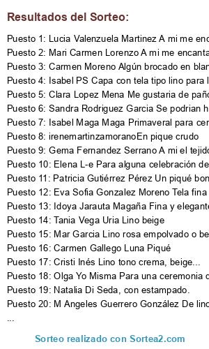 - Puesto 20: M Angeles Guerrero González De lino. Para ceremonia quedan ideales.