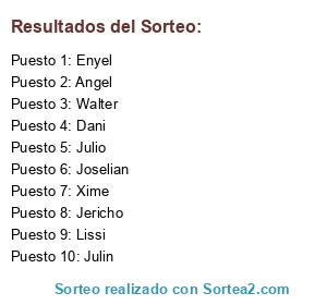 Lista de participantes: Mecha(10 participaciones), Kriztof(9 participaciones), Capi(8 participaciones), Benja(7 participaciones), Ale(6 participaciones), Willi(5 participaciones), Xime(4 participaciones), Jimena(3 participaciones), Alan(2 participaciones), Manu.