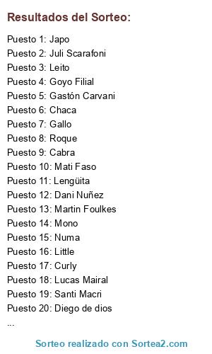 Resultados del sorteo: