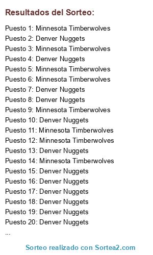 - Puesto 16: Denver Nuggets