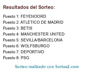 Lista de participantes: BETIS, ATLETICO DE MADRID, WOLFSBURGO, FEYENOORD, DEPORTIVO, MANCHESTER UNITED, PSG, SEVILLA/BARCELONA.