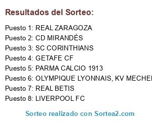 Lista de participantes: OLYMPIQUE LYONNAIS, KV MECHELEN / AS MONACO, GETAFE CF, PARMA CALCIO 1913, CD MIRANDÉS, REAL BETIS, LIVERPOOL FC, SC CORINTHIANS, REAL ZARAGOZA.
