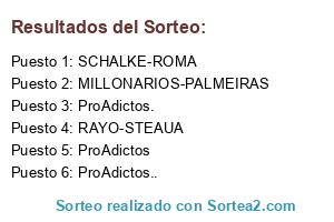 Lista de participantes: RAYO-STEAUA, MILLONARIOS-PALMEIRAS, SCHALKE-ROMA, ProAdictos, ProAdictos., ProAdictos...