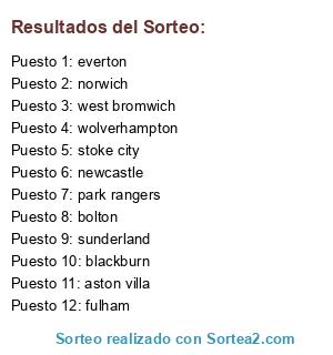 Lista de participantes: park rangers, aston villa, norwich, blackburn, bolton, stoke city, wolverhampton, west bromwich, everton, sunderland, newcastle, fulham.