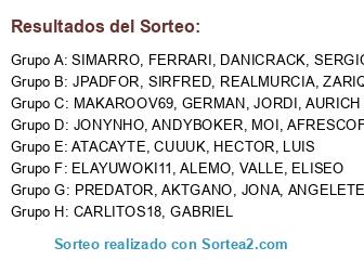 Lista de participantes: MAKAROOV69, ANGELETE, SERGIOHERAS, AFRESCOFER, SIRFRED, ATACAYTE, REALMURCIA, CUUUK, ELISEO, LUIS, PREDATOR, AKTGANO, ELAYUWOKI11, JORDI, HECTOR, MOI, JONA, JPADFOR, AURICH, ALEMO, FERRARI, GERMAN, ANDYBOKER, DANICRACK, ZARIQUIEGUI, GABRIEL, CARLITOS18, VALLE, JONYNHO, SIMARRO.