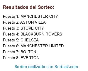 Lista de participantes: STOKE CITY, BOLTON, MANCHESTER CITY, EVERTON, ASTON VILLA, CHELSEA, BLACKBURN ROVERS, MANCHESTER UNITED.