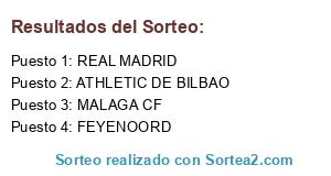 Lista de participantes: FEYENOORD, REAL MADRID, MALAGA CF, ATHLETIC DE BILBAO.