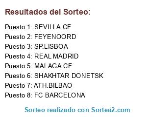 Lista de participantes: INTER MILAN, JUVENTUS, VALENCIA, R.MADRID, OPORTO, AT.MADRID, PSG, R.SOCIEDAD.