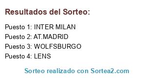Lista de participantes: WOLFSBURGO, LENS, AT.MADRID, INTER MILAN.