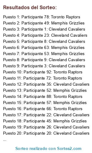 - Puesto 3: Participante 1: Cleveland Cavaliers