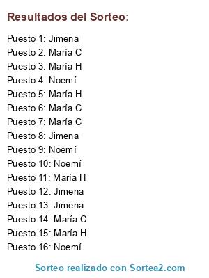 Lista de participantes: Jimena, Jimena, Jimena, Jimena, Noemí, Noemí, Noemí, Noemí, María C, María C, María C, María C, María H, María H.